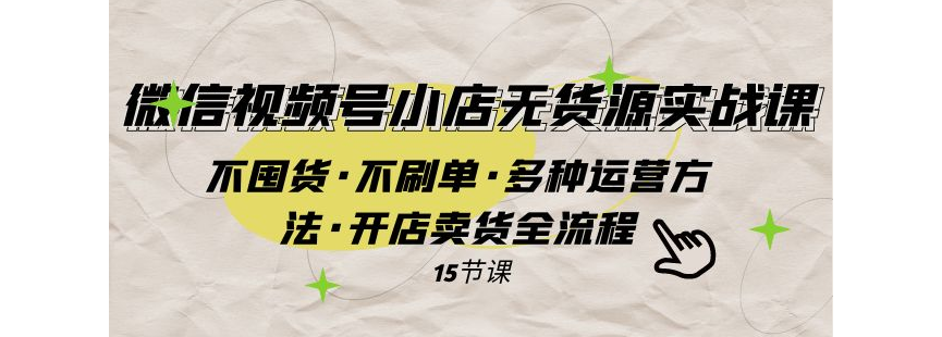 微信视频号小店无货源实战 不囤货·不刷单