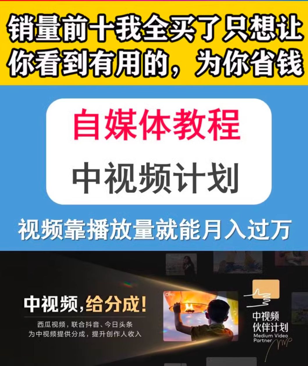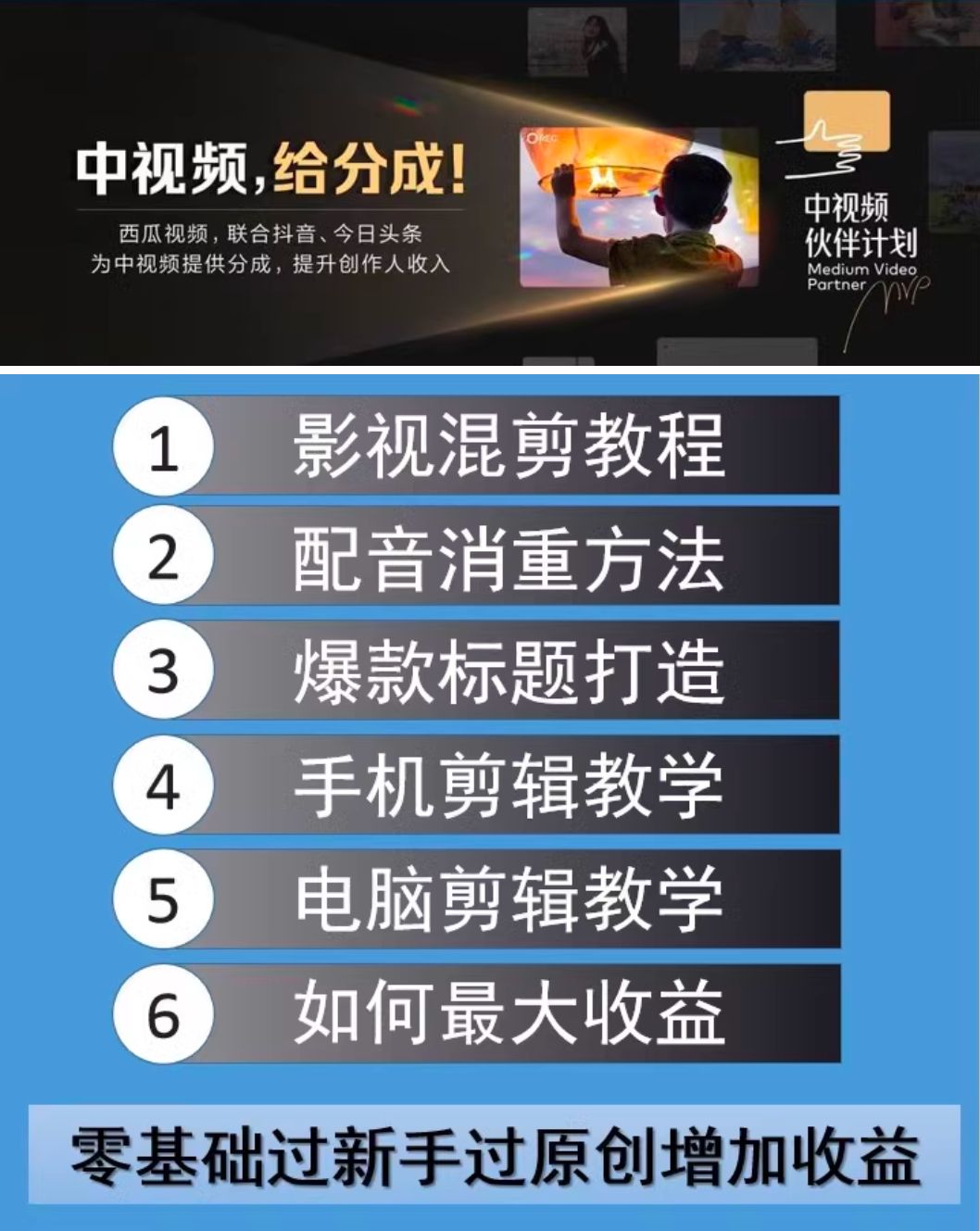 抖音中视频伙伴计划影视视频pr剪辑今日头条西瓜自媒体运营教程